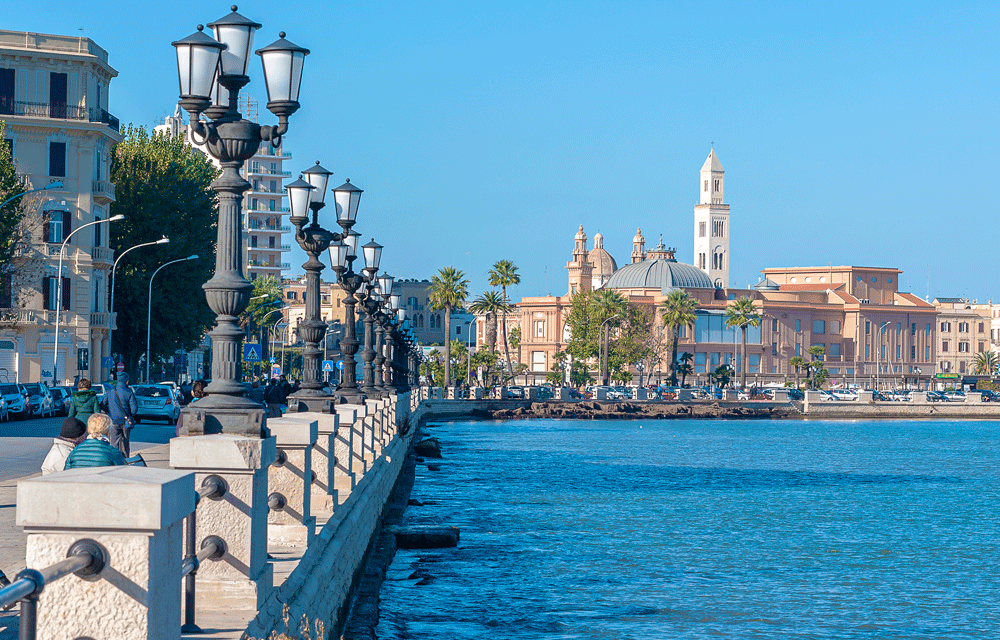 A circa 40 minuti, Bari offre l’energia del capoluogo pugliese: Bari Vecchia con le sue orecchiette fatte a mano, la Basilica di San Nicola e il lungomare tra i più belli d’Italia. Una città viva, dinamica e ricca di eventi culturali.